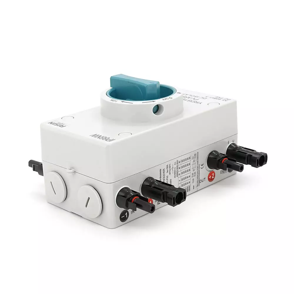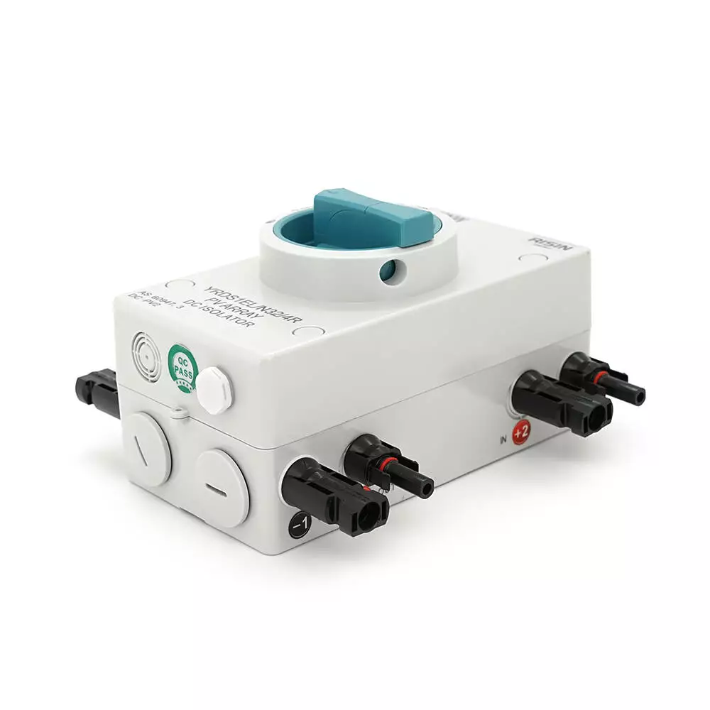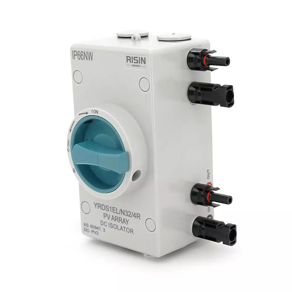 Ручний вимикач Risin призначений для використання в системах живлення з напругою до 1000V. Він має номінальний струм 32A та 4 полюси. Захист від пилу та вологи відповідає класу IP66. Вимикач оснащений входом із ліво-правим підключенням та має сірий колір.