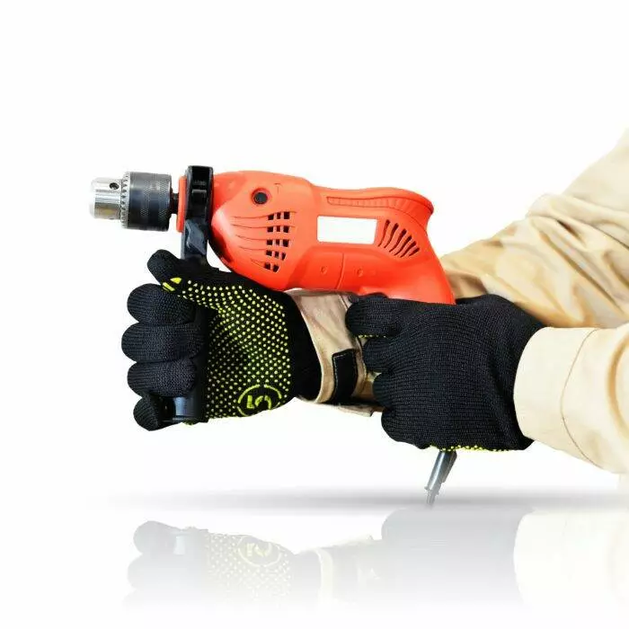 Рукавички трикотажні TWIST бавовна/поліестерові, клас 7 ПВХ нанесення, чорна ціна за 10 пар