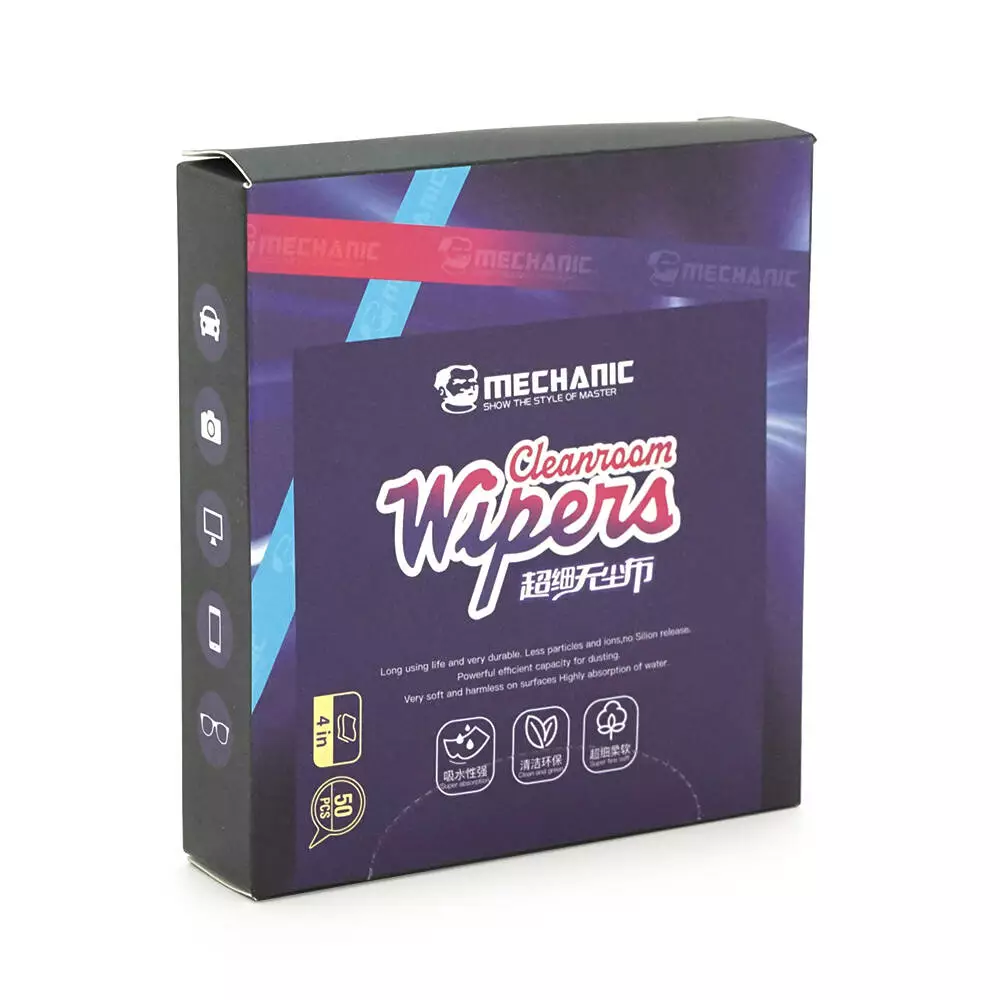 Серветки MECHANIC Repair guy 4 дюйми (10*10 см), ультратонкі, антистатичні. для електронної техніки, 50 шт, BOX 100*25*110mm