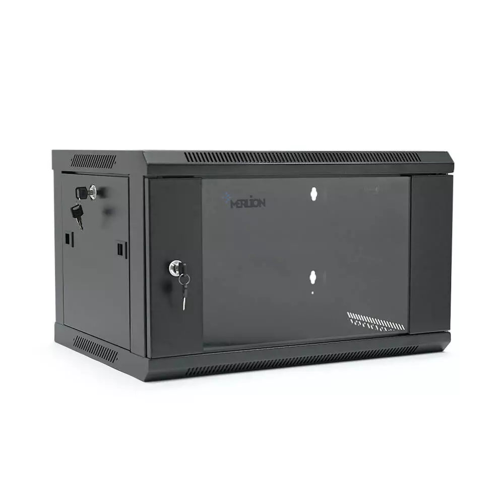Шафа Merlion 4U, 600*350*279 (Ш*Г*В)мм загартоване скло, чорна, сталь 1,2мм, із замком (у розібраному вигляді!!!), Black