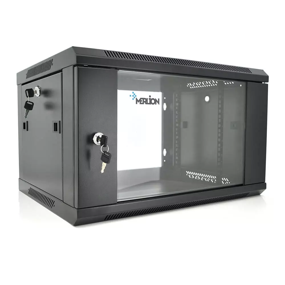 Шафа Merlion 6U, 600*450*367 (Ш*Г*В) мм загартоване скло, чорна. сталь 1,2мм з замком