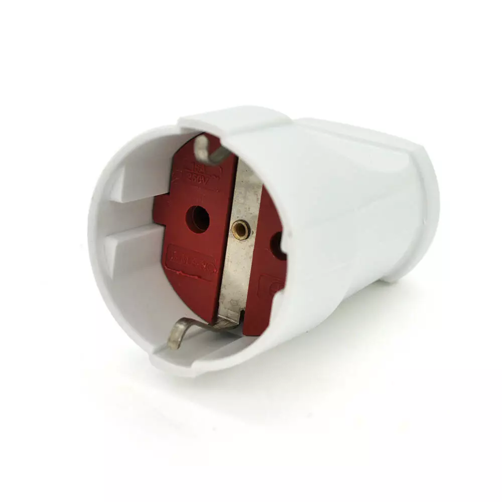 Це розбірне штепсельне гніздо Євро із заземленням призначене для використання з електричними пристроями, які потребують підключення до мережі напругою 220V. Воно має колірне оформлення у білому та червоному кольорах.