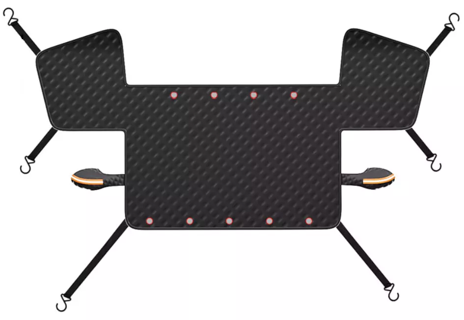 Авточохол-шторка ST-4022B. На лобове та 2 передніх скла. Розмір: 1600×1200 мм. 6 фіксаторів. Матеріал алюмінієва плівка+бавовна. Вага: 0,665 кг. Чорний.