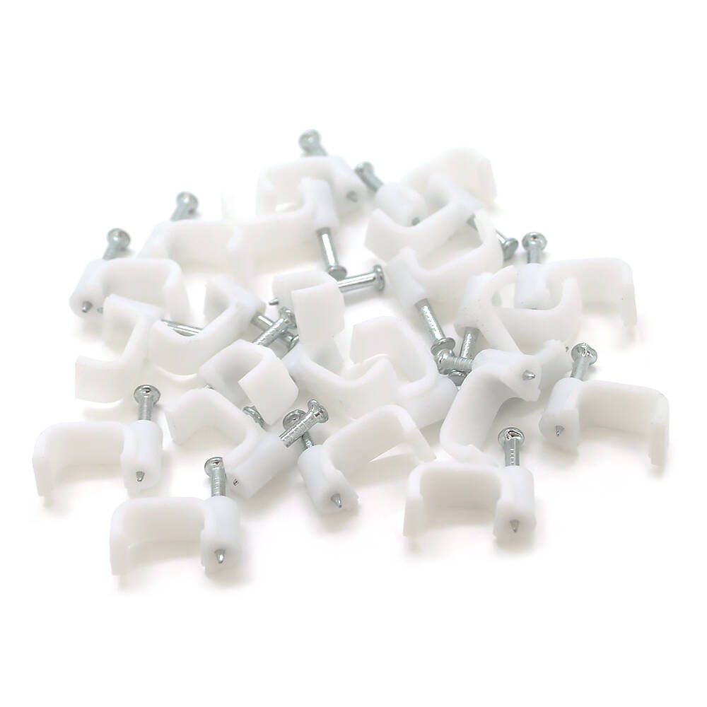 Скоби 22мм для кріплення кабелю (100 шт/уп) білі – це набір білих скоб для кріплення кабелю довжиною 22 мм. Кількість в упаковці – 100 штук.
