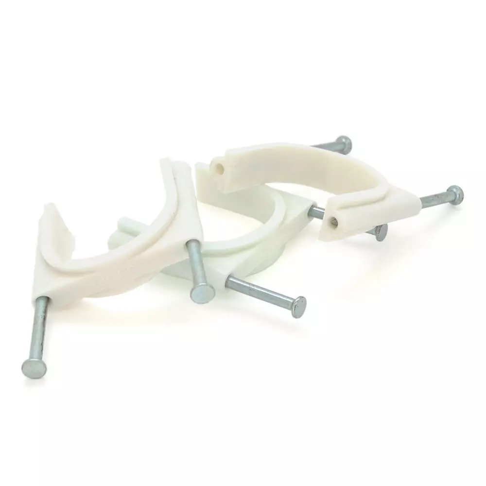 Опис: Набір скоб для кріплення кабелю із довжиною 50 мм у білому