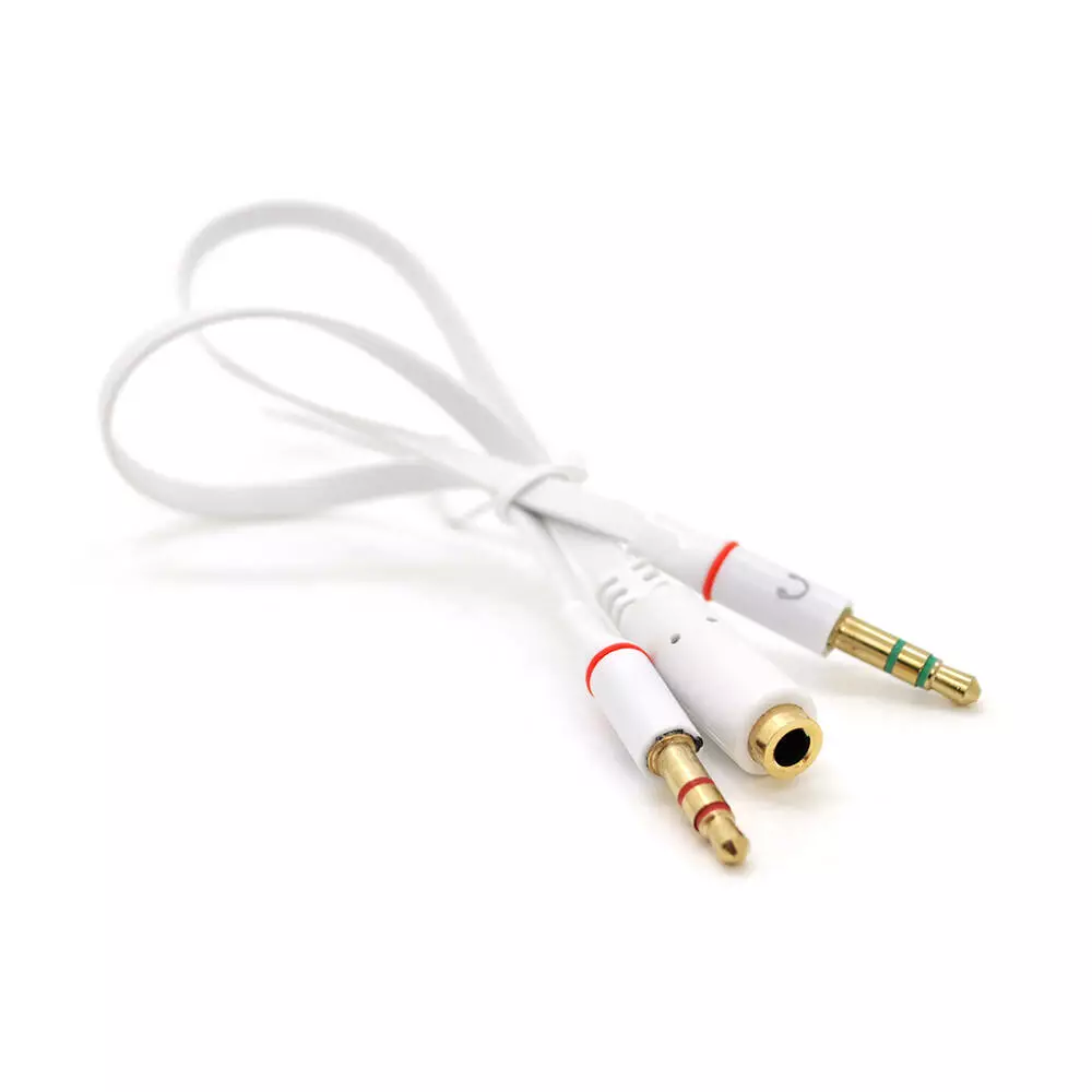Спліттер Jack 3.5 (мама) 2 pin => 2*Jack 3.5(тато) 2 pin, плоский, White Пакет