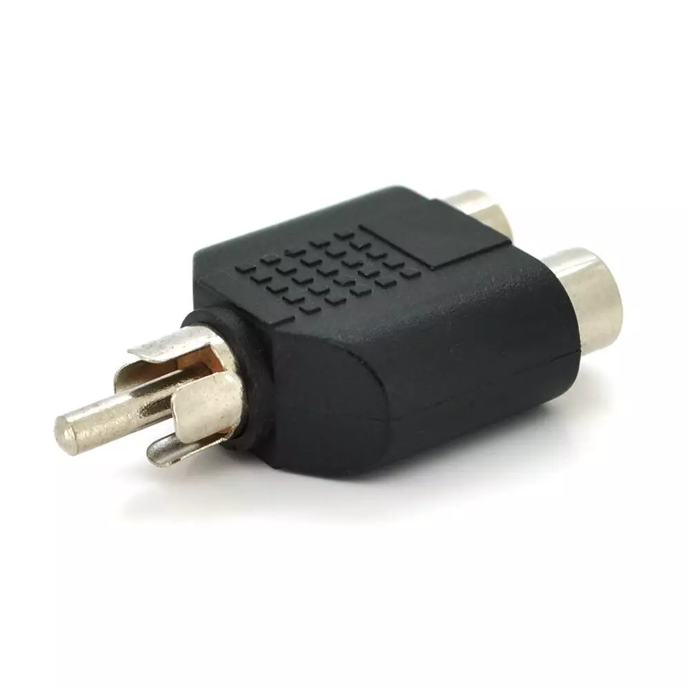 Спліттер RCA призначений для поділу аудіо-сигналу на два виходи. Він має роз'єм типу "тато" і двома роз'ємами типу "мама".