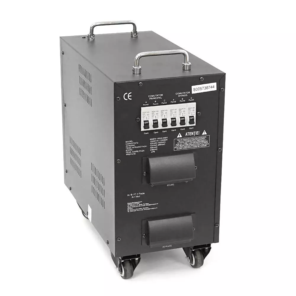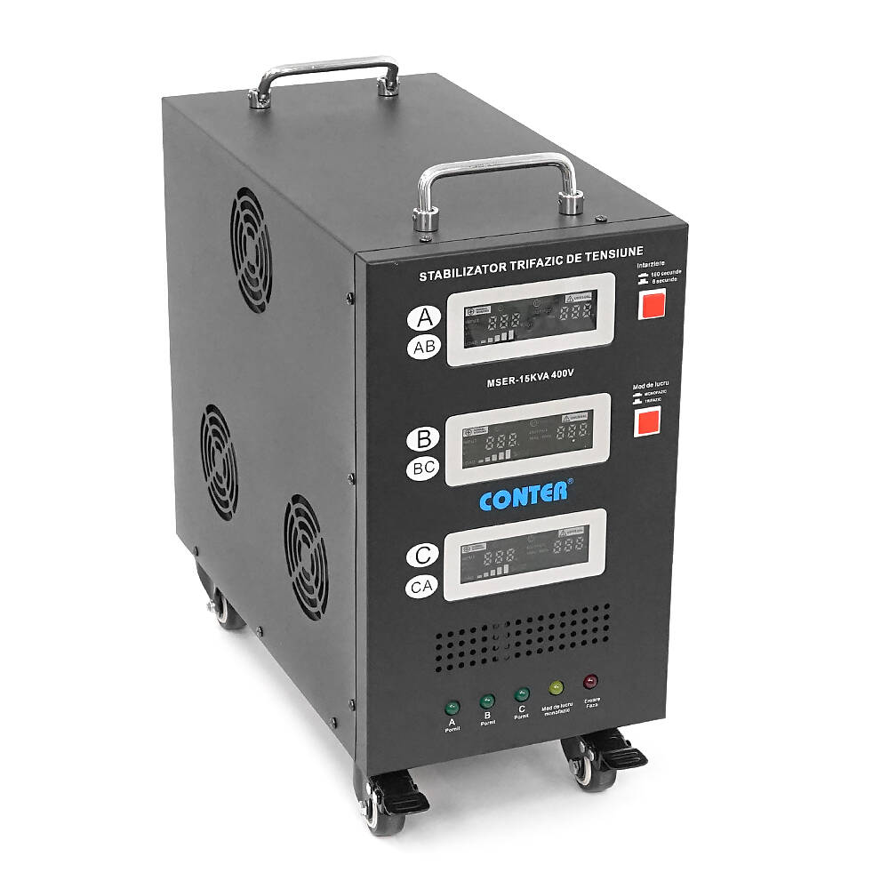 Стабілізатор напруги Conter MSER-15KVA/12KW- 400V-V2 трифазний, сервопривід, монтажу підлоги, LED дисплей, діапазон 225-450V, AC400±3%, колодка, 416x219x352 mm, 33.8kg