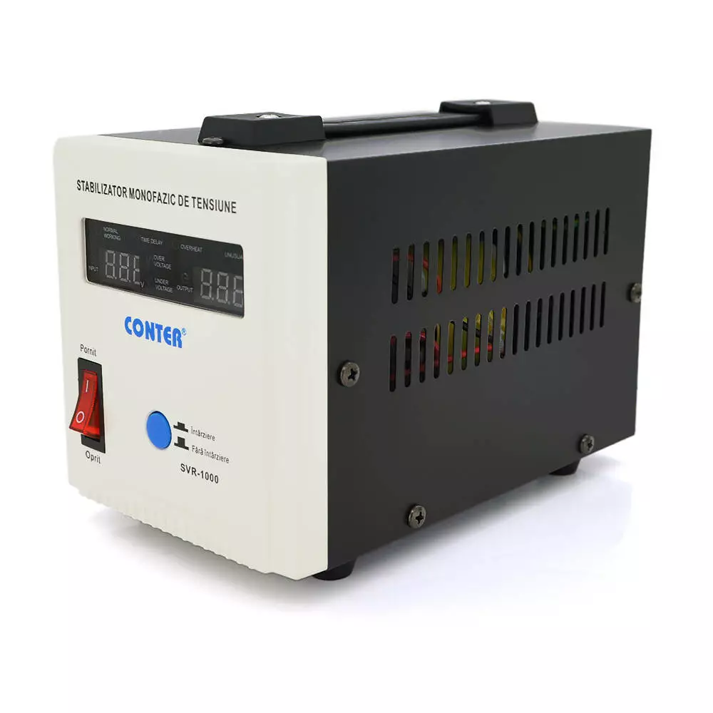 Стабілізатор напруги релейний Conter SVR-1000VA/750W однофазний, напольного монтажу, LED дисплей, DC150-270V, AC230±8%, 2Shuko, Q8