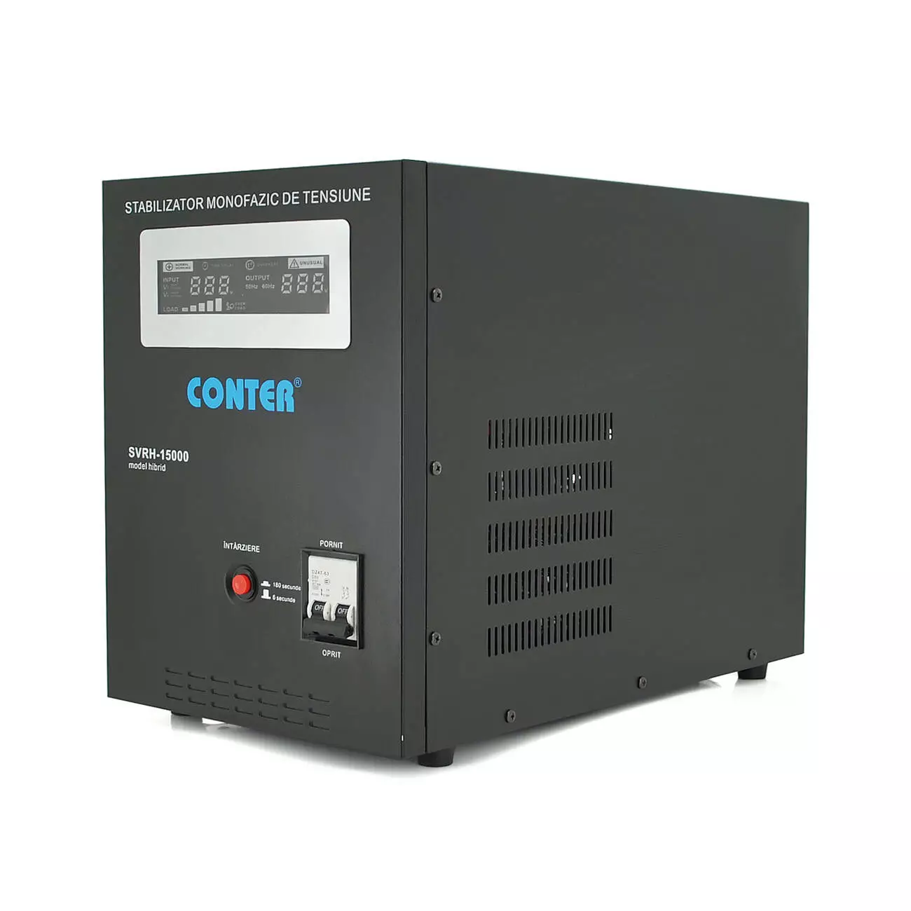 Стабілізатор напруги релейний Conter SVRH-15000VA/10500W однофазний, напольного монтажу, LED дисплей, DC150-270V, AC230±8%, 2*Shuko, Q1