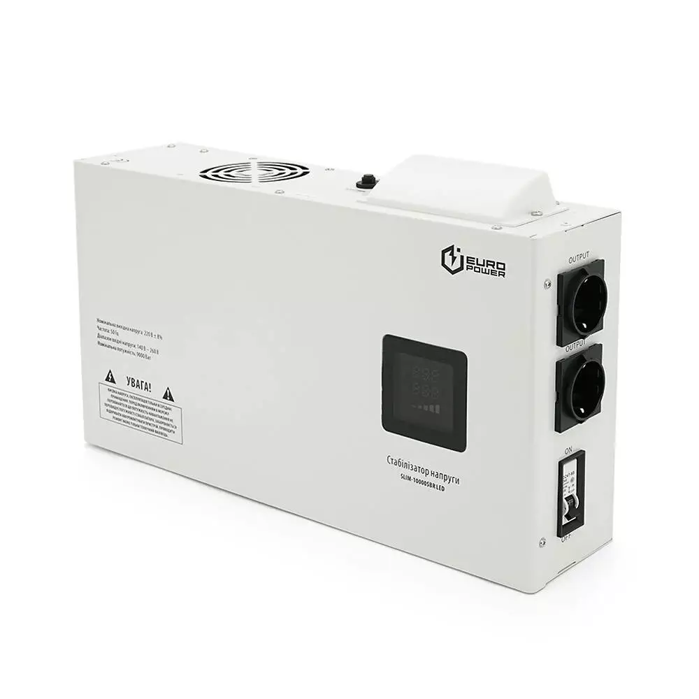 Стабілізатор напруги релейний настінного монтажу Europower SLIM-10000SBR LED, 10KVA 9000W, 140-270Vac, 2SHUKO, Q1 (515*270*205) 13.5 кг