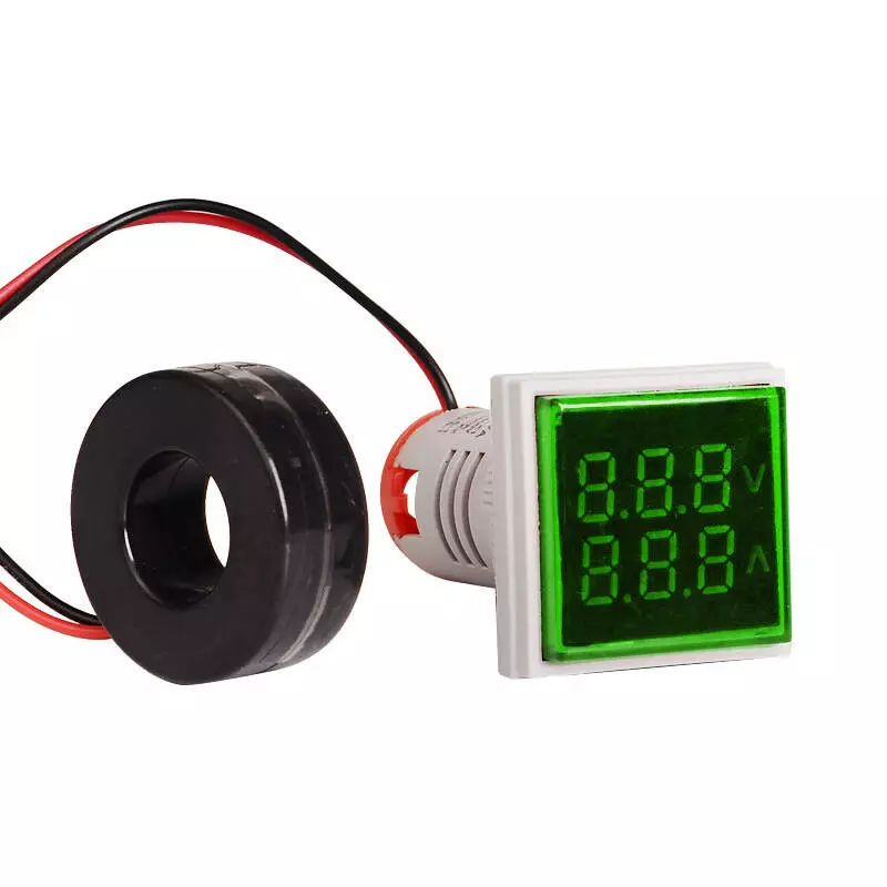 Світлодіодний цифровий вольтметр-амперметр змінного струму ST17VA, 60-500V, 0-100A, Green, 28х51х20 mm