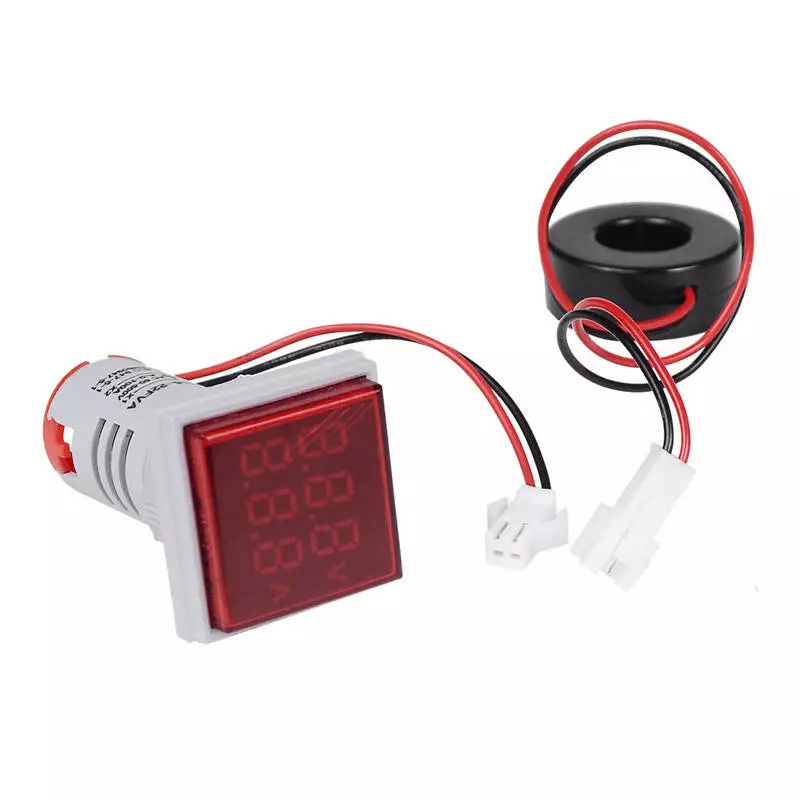 Світлодіодний цифровий вольтметр-амперметр змінного струму ST17VA, 60-500V, 0-100A, Red, 28х51х20 mm