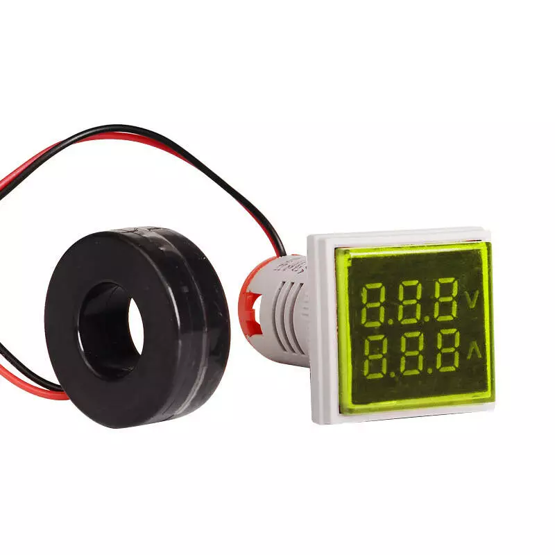 Світлодіодний цифровий вольтметр-амперметр змінного струму ST17VA, 60-500V, 0-100A, Yellow, 28х51х20 mm