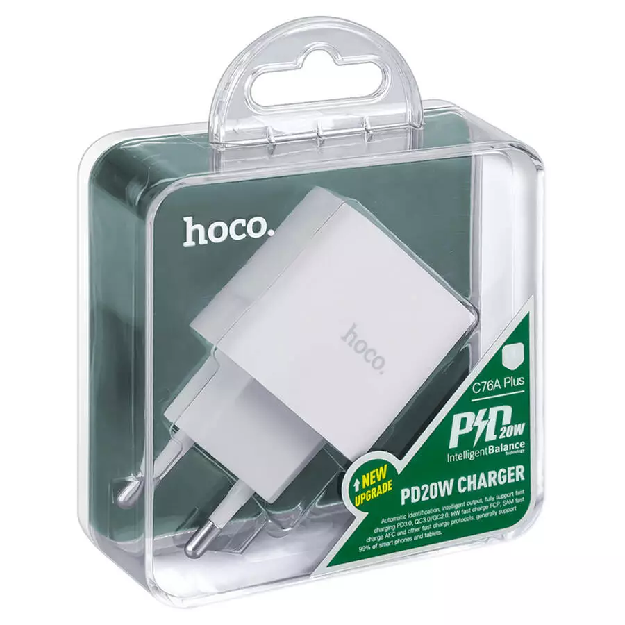 СЗУ 110-240V HOCO C76APlus, USB-C, PD20W, PPS, QC3.0, White, Box