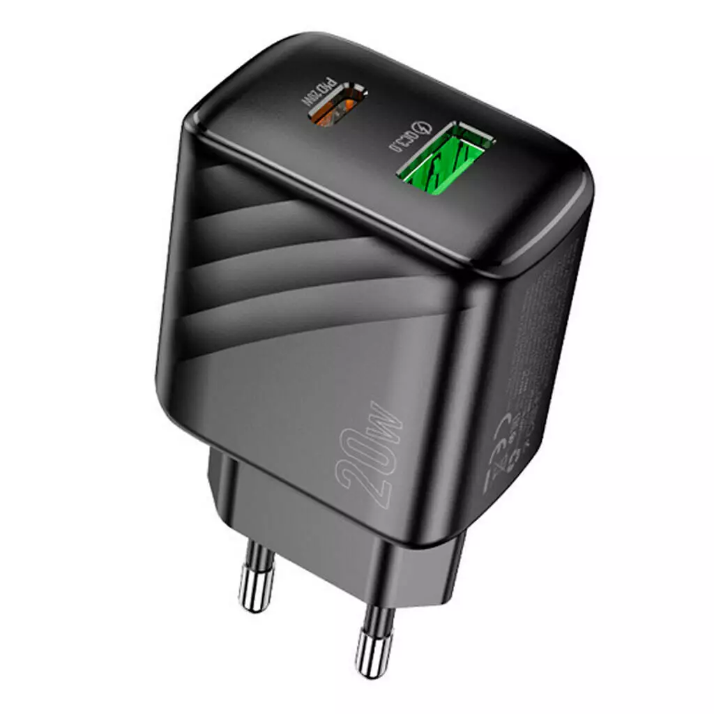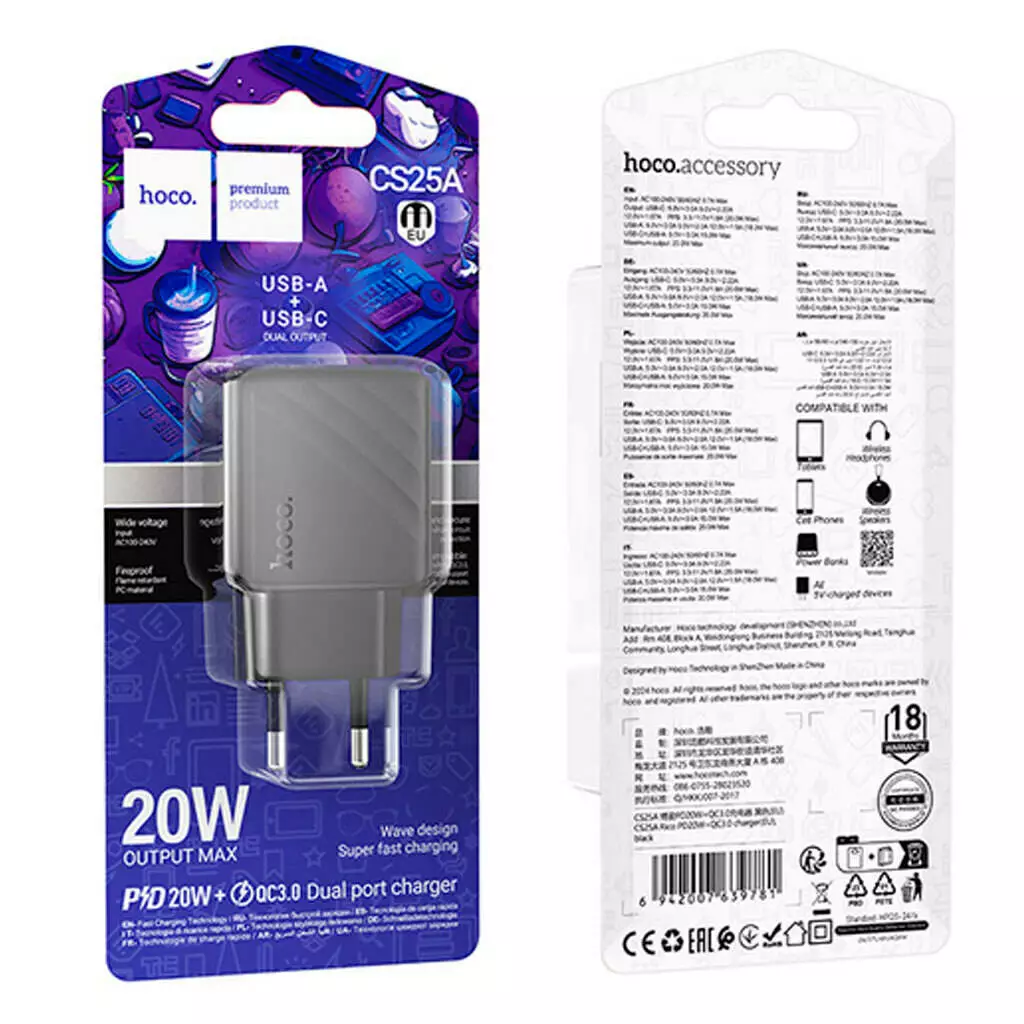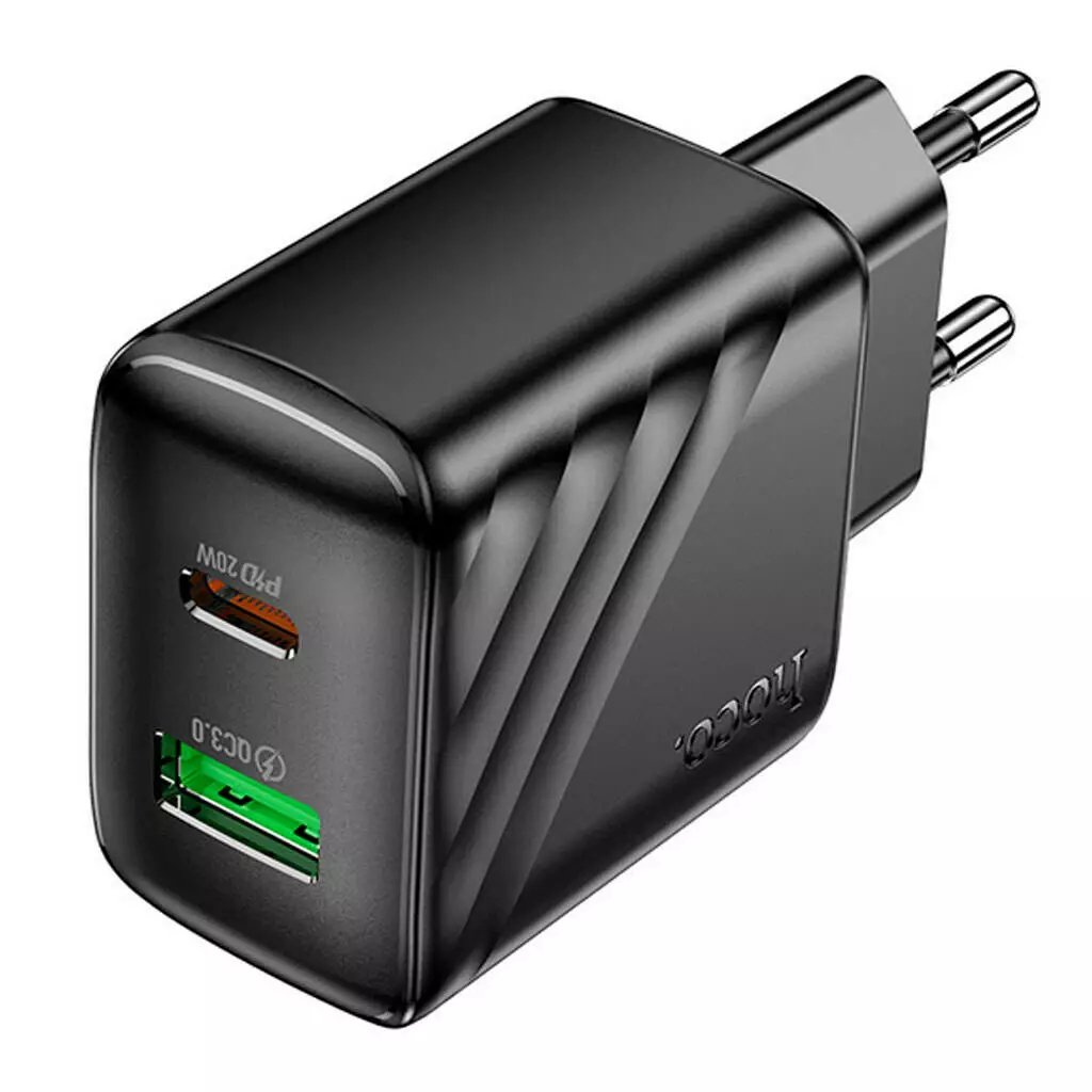 СЗУ 110-240V HOCO CS25A USB-C+USB, 20W, Black, Blister