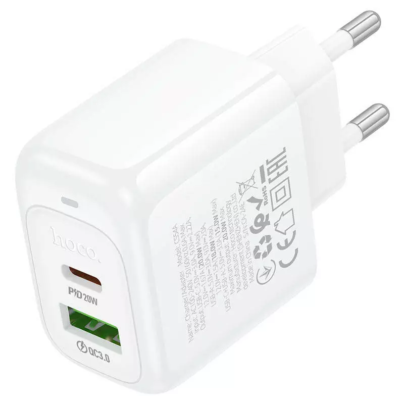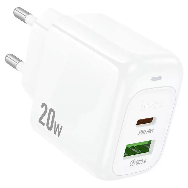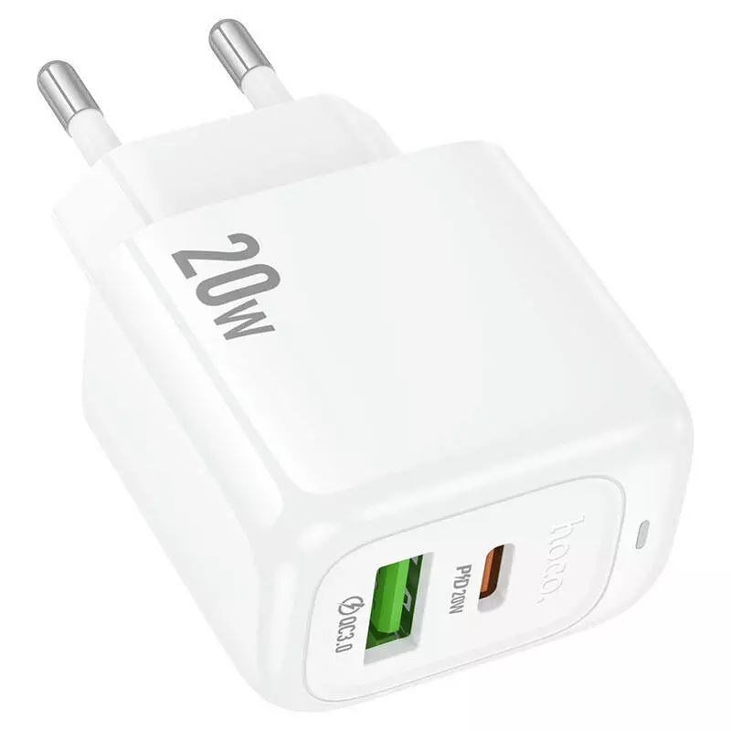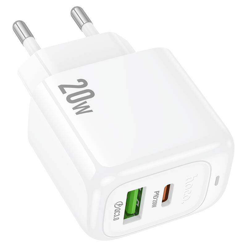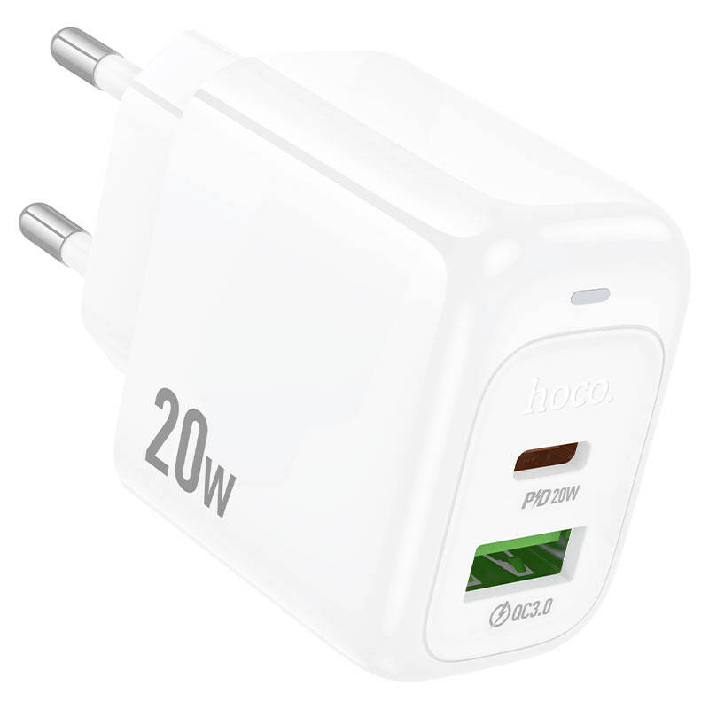 СЗУ 110-240V HOCO CS54A, 1xUSB, 1xUSB-C, PD20W, White, Blister