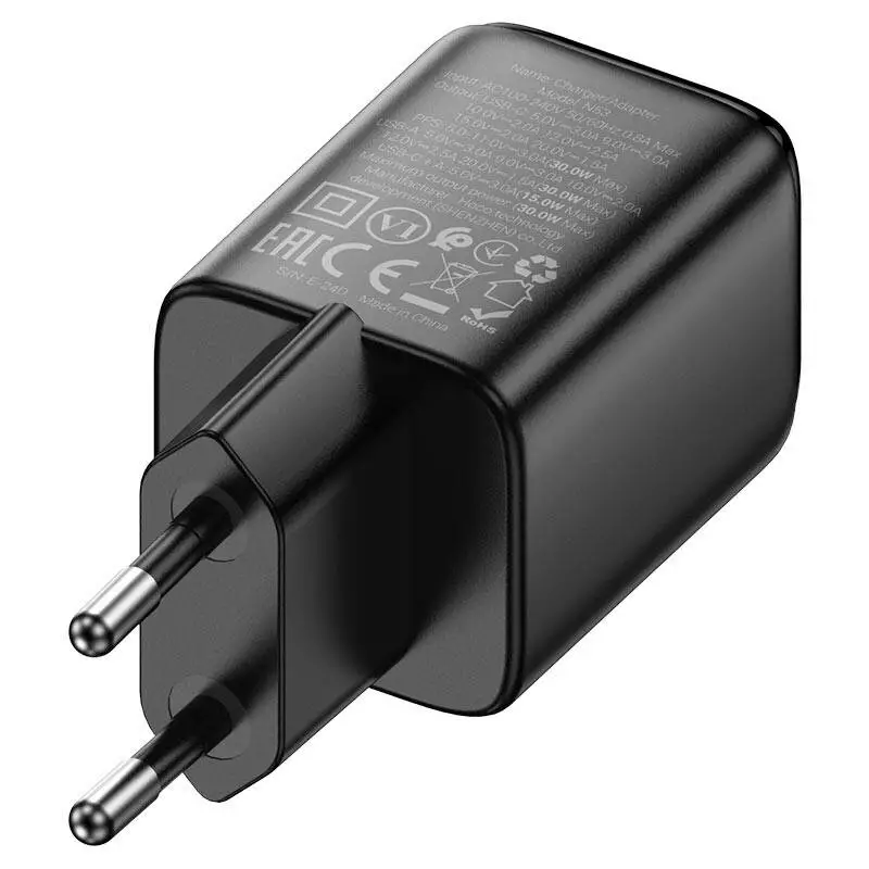 СЗУ HOCO N53 110-240V, PD30W+Q3.0, USB+Type-C, Black, Box