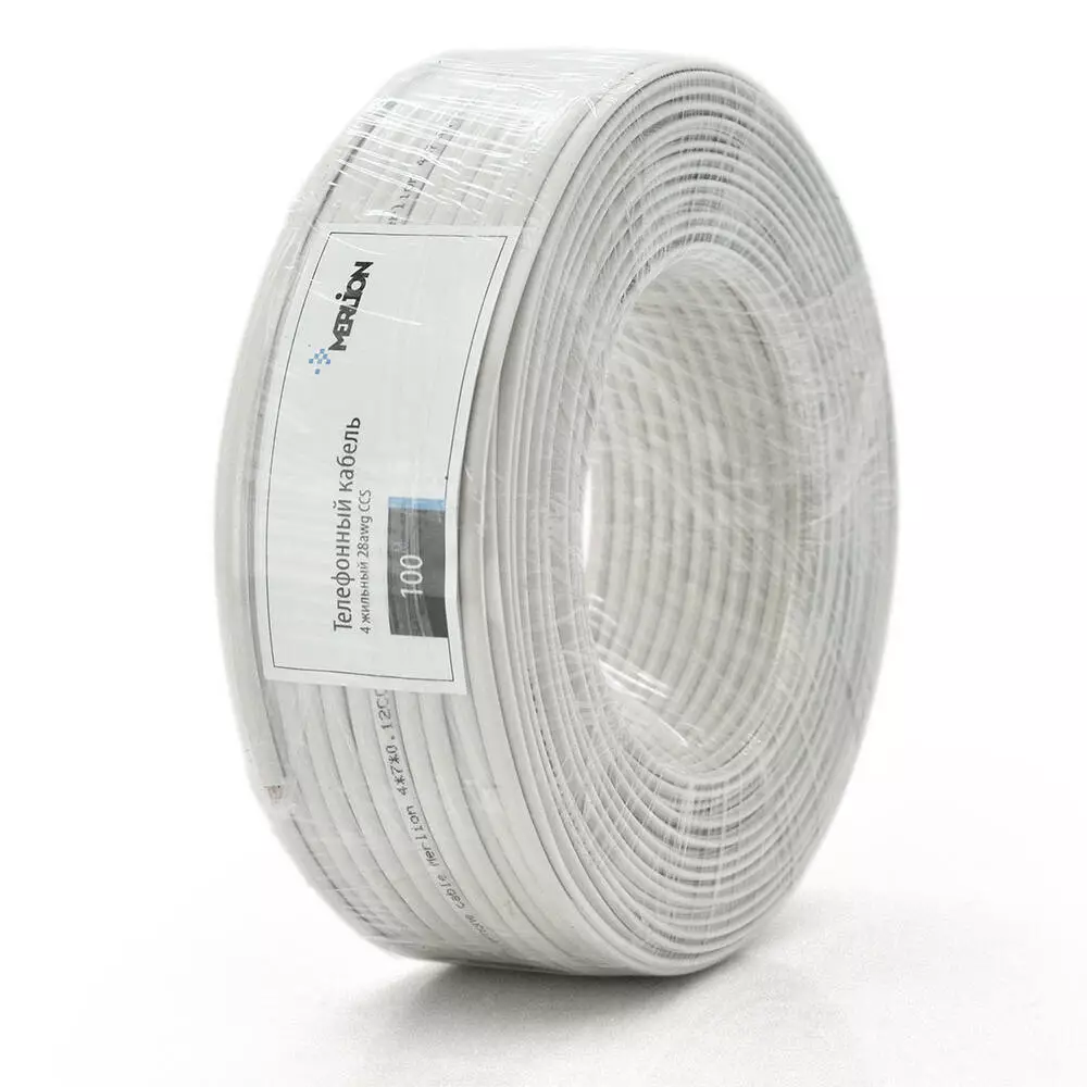 Телефонний кабель Merlion 4 житловий 28awg CCS 100метрів у бухті білий