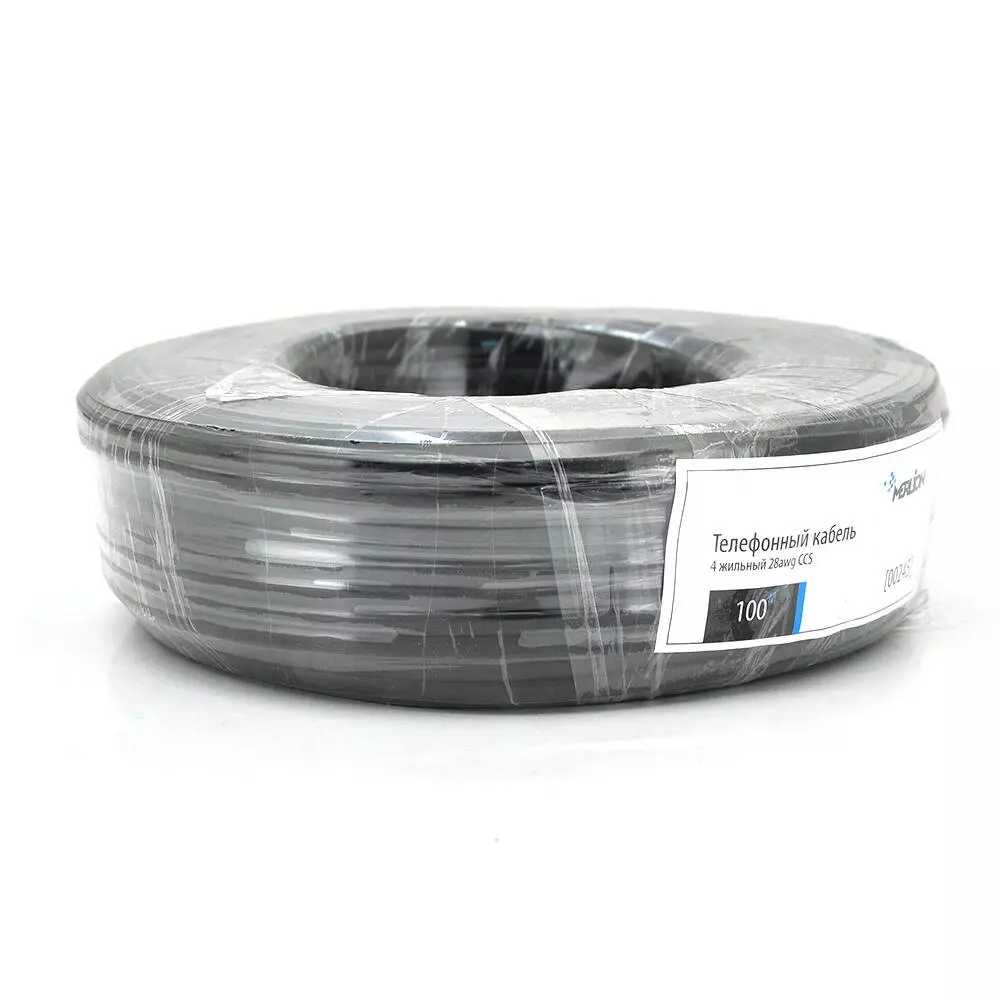 Телефонний кабель Merlion 4 житловий 28awg CCS, моножильний, круглий, 100метрів у бухті чорний
