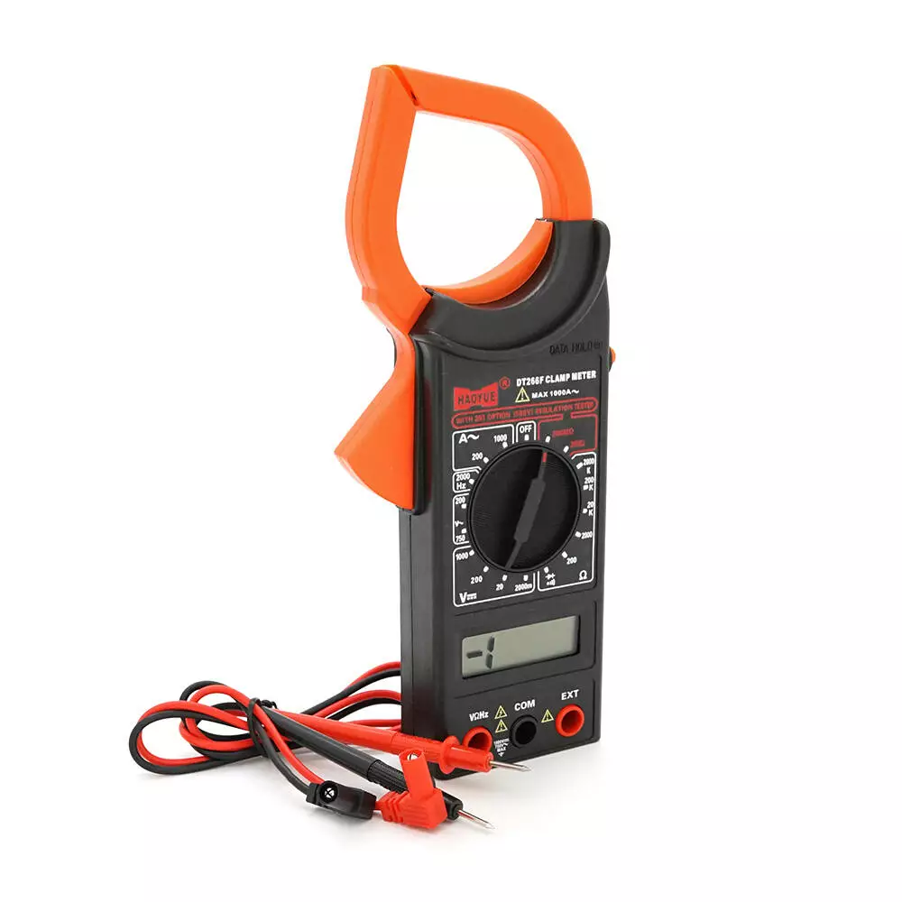 Токові кліщі HAOYUE DT-266F Вимірювання: V (AC/DC), A (AC/DC), Ω (NCV). Функції: продзвонювання, тест діодів/транзисторів, підсвічування.