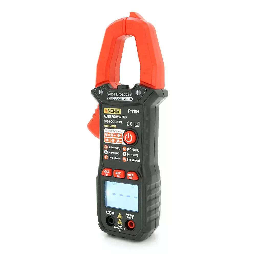 Токові кліщі ANENG PN104 Вимірювання: V (AC/DC), A (AC/DC), Ω, C, Hz (NCV, True RMS). Функції: Data Hold, продзвонювання, тест діодів, автовимкнення.