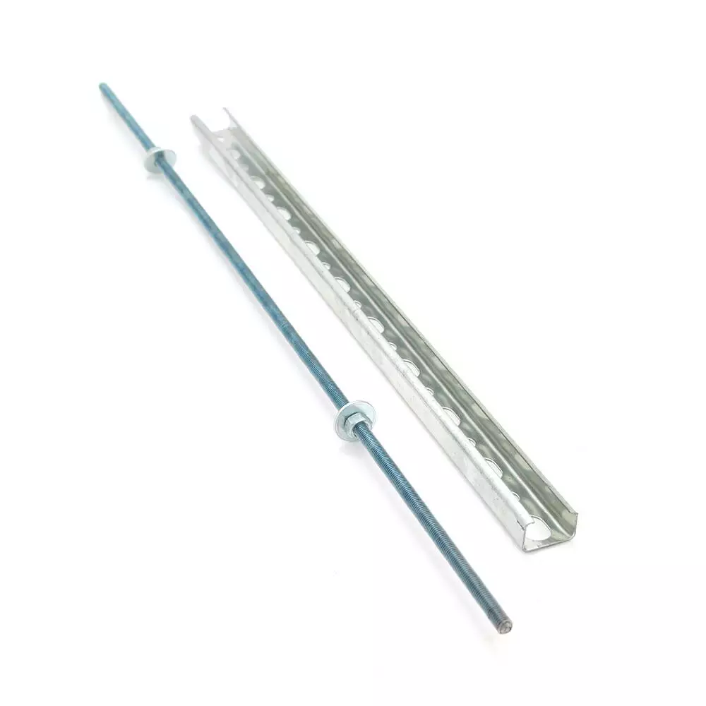 У комплекті, крім перфорованої планки, входять: різьбова шпилька, довжиною 1000 мм, дві гайки з різьбленням М8 та дві шайби.