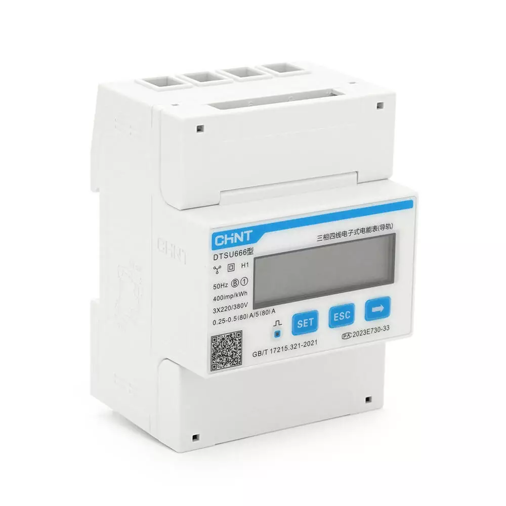 Трифазний електронний лічильник CHINT DDSU666-3-220/380V-5-80A, трифазний на DIN-рейку, 220/380V, 80A, LCD, 95*120*75mm