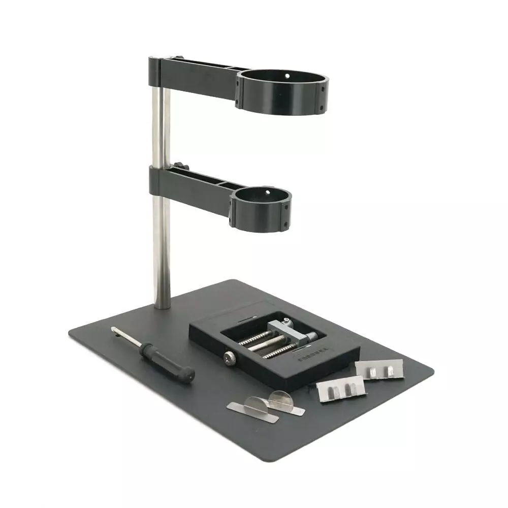 Конструкція призначена для точного позиціонування термофена під час виконання монтажних та демонтажних робіт з BGA-чіпами, SMD-компонентами та багатошаровими друкованими платами. Утримувач вирішує ключові завдання забезпечення стабільного температурного режиму, запобігання випадковому зміщенню інструменту та зниження стомлюваності оператора при тривалих роботах.