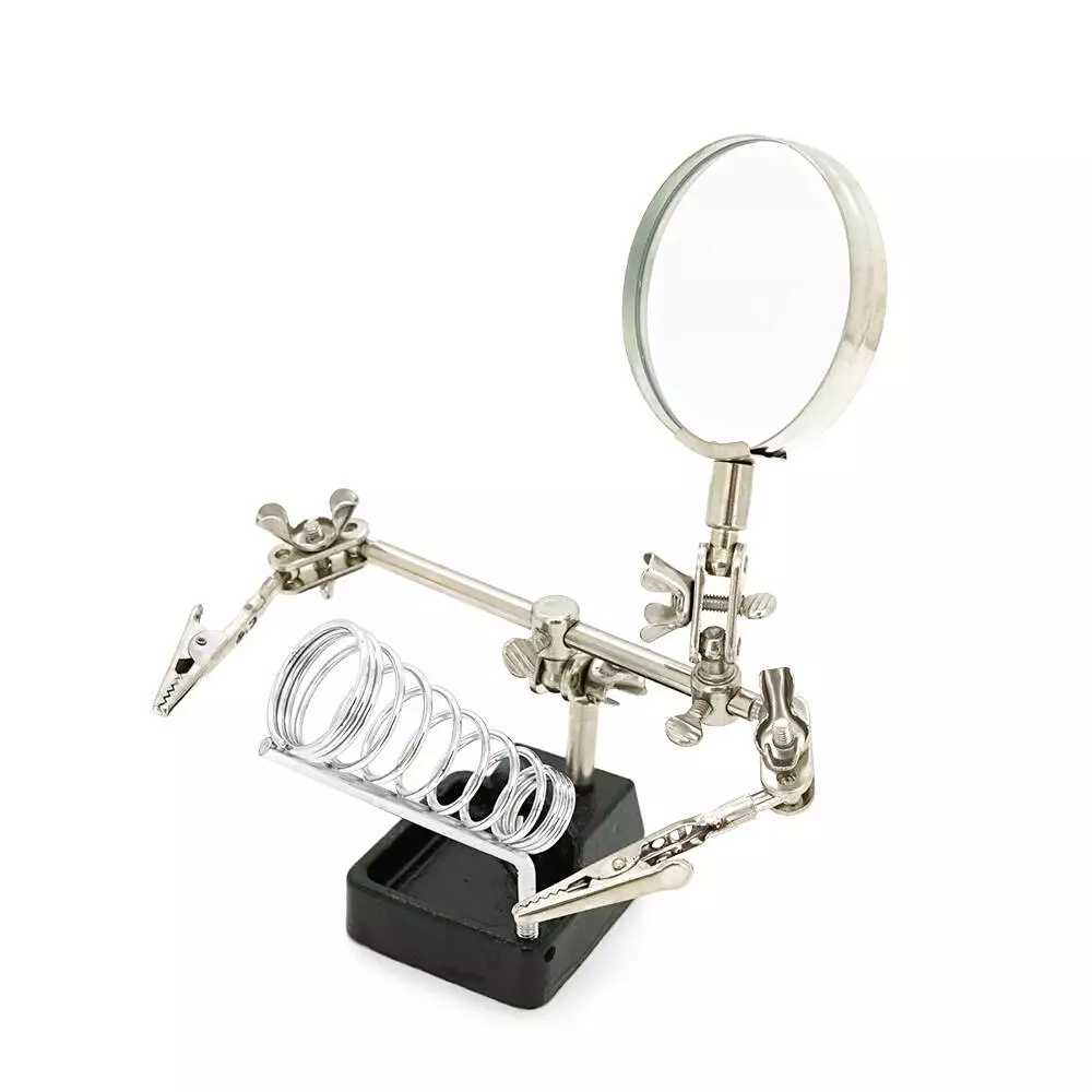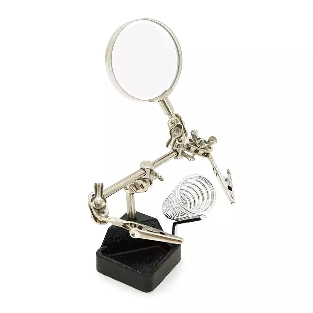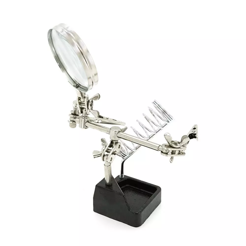 Тримач "третя рука" MG16130 призначений для утримання предметів при виконанні різних видів робіт, таких як паяння, моделювання та ремонт електроніки. Його діаметр становить 65 мм, що забезпечує надійне утримання об'єктів різної форми та розміру. Міцні кріплення забезпечують стійкість та надійність при використанні.