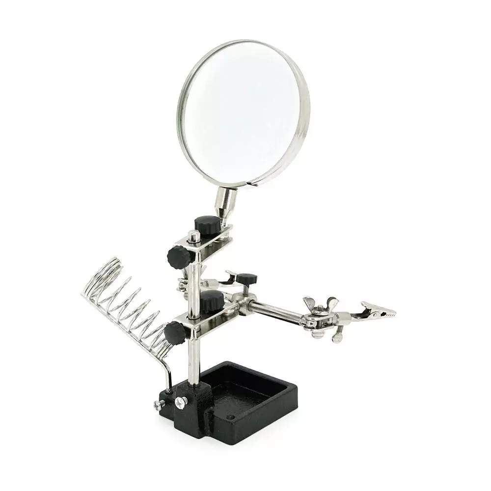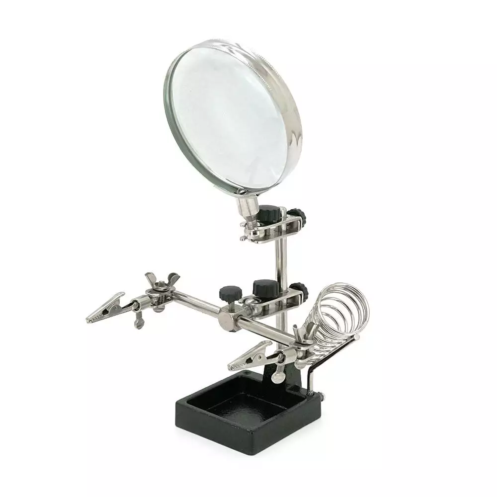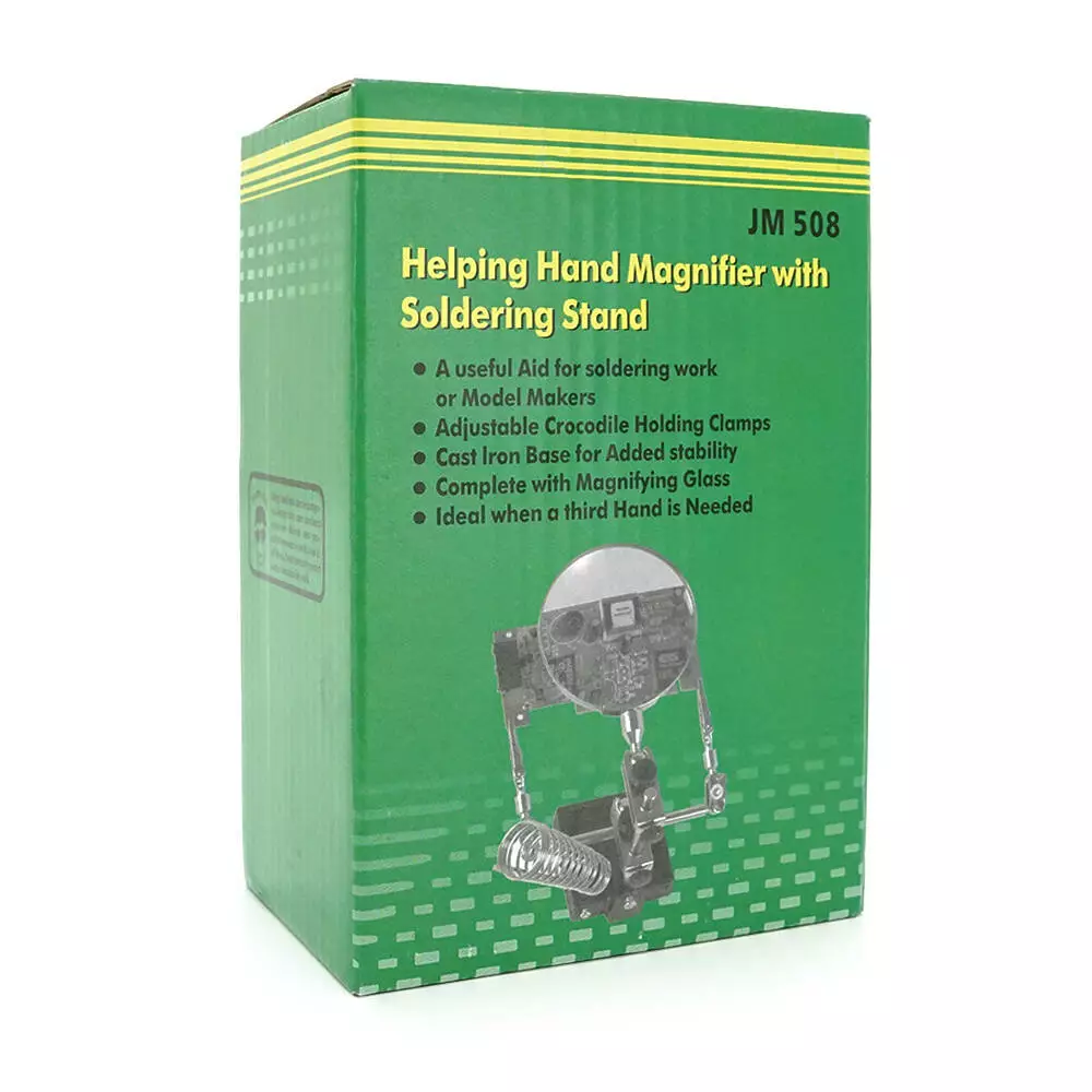 Тримач "третя рука" MG508 призначений для утримання предметів під час виконання дрібних робіт. Він має діаметр 65 мм та забезпечує збільшення від 3,5Х до 12Х. Продукт поставляється у зручній упаковці типу "Box".