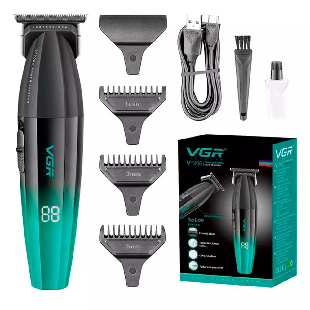 Тример VGR V-906, 3 насадки, керамічне лезо, TURBO режим 9000 RPM, LED display, Box