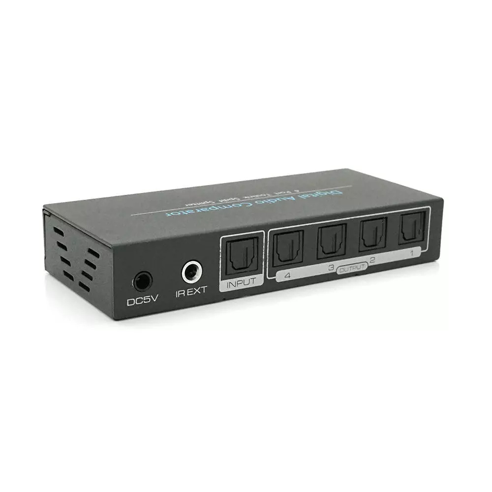 Цифровий оптичний роздільник звуку SPDIF/Toslink 1x4 призначений для поділу та посилення цифрового оптичного аудіосигналу. Пристрій забезпечує високоякісне відтворення звуку та підходить для використання в домашніх кінотеатрах, аудіосистемах та інших цифрових звукових пристроях.