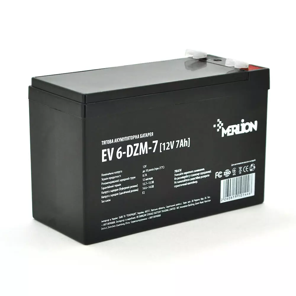 Тягова акумуляторна батарея Merlion EV 6-DZM-7, 12V 7Ah F2 (151*65*93), Q10