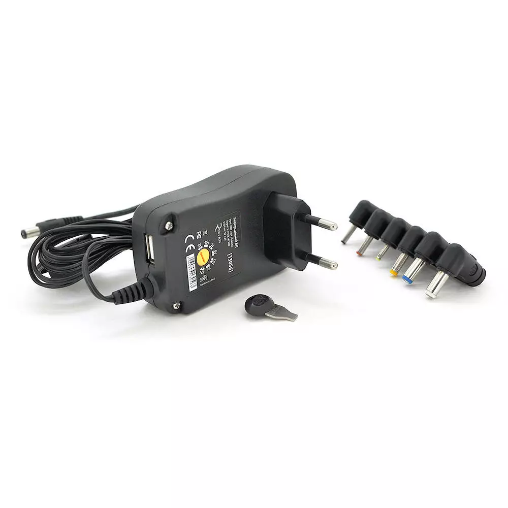 Універсальний БП Input 100V-240V 50-60Mhz, Output :3V-12V-2.1A 30W, 6 Г-подібних роз'ємів 2.35*0.75/ 3.0*1.1/3.5*1.35/4.0*1.7 /5.5