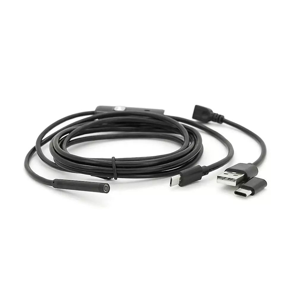 Універсальний ендоскоп 3в1 (USB/MicroUSB/Type-C) для смартфона/ПК, камера 5.5мм, м'який кабель 2м, з LED-підсвічуванням, IP67
