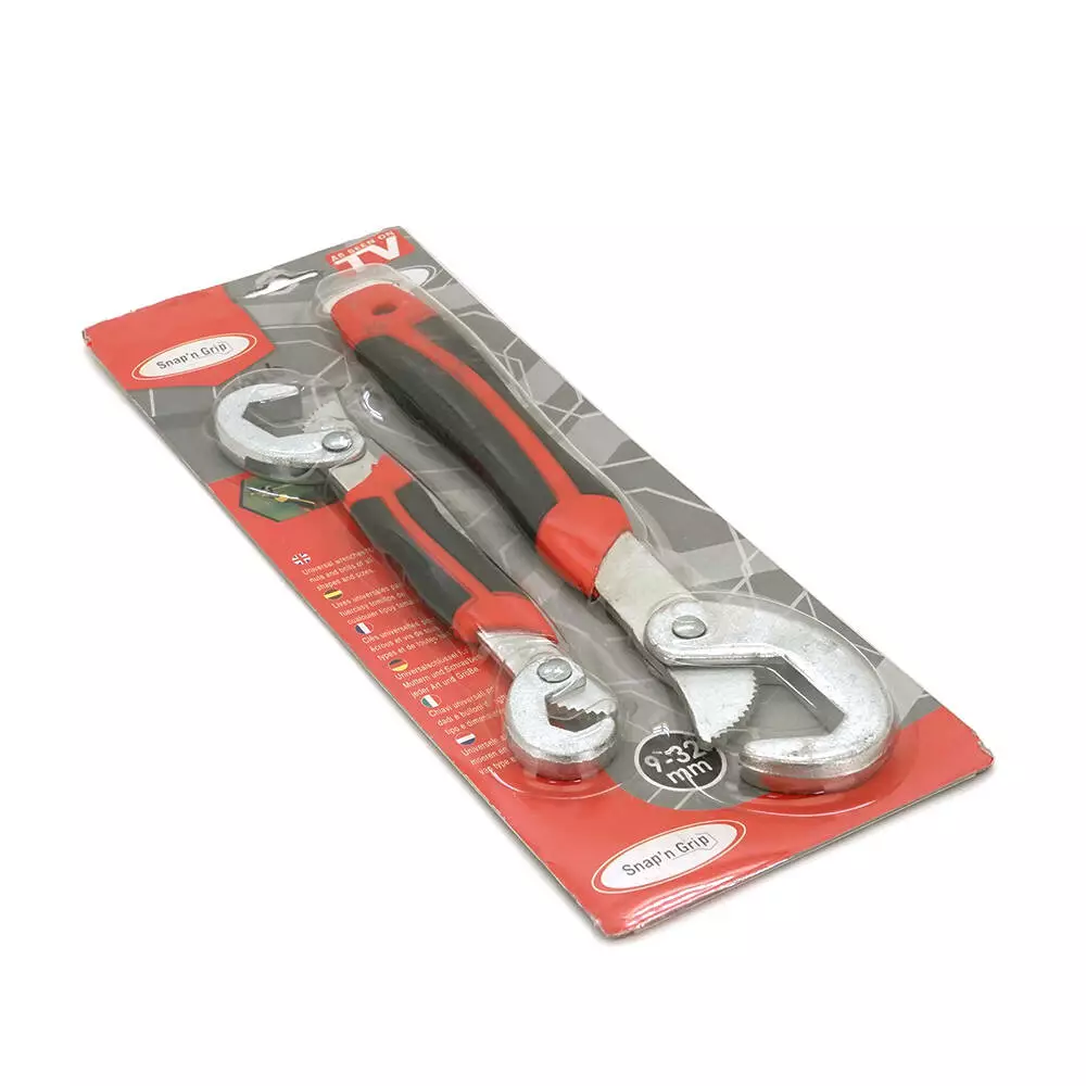 Універсальний ключ Snap n Grip є набором з двох ключів, здатних підлаштовуватися під будь-який розмір гайок і болтів від 9 до 32 мм. Цей інструмент ідеально підходить для швидкої та зручної роботи з різними видами кріплення.