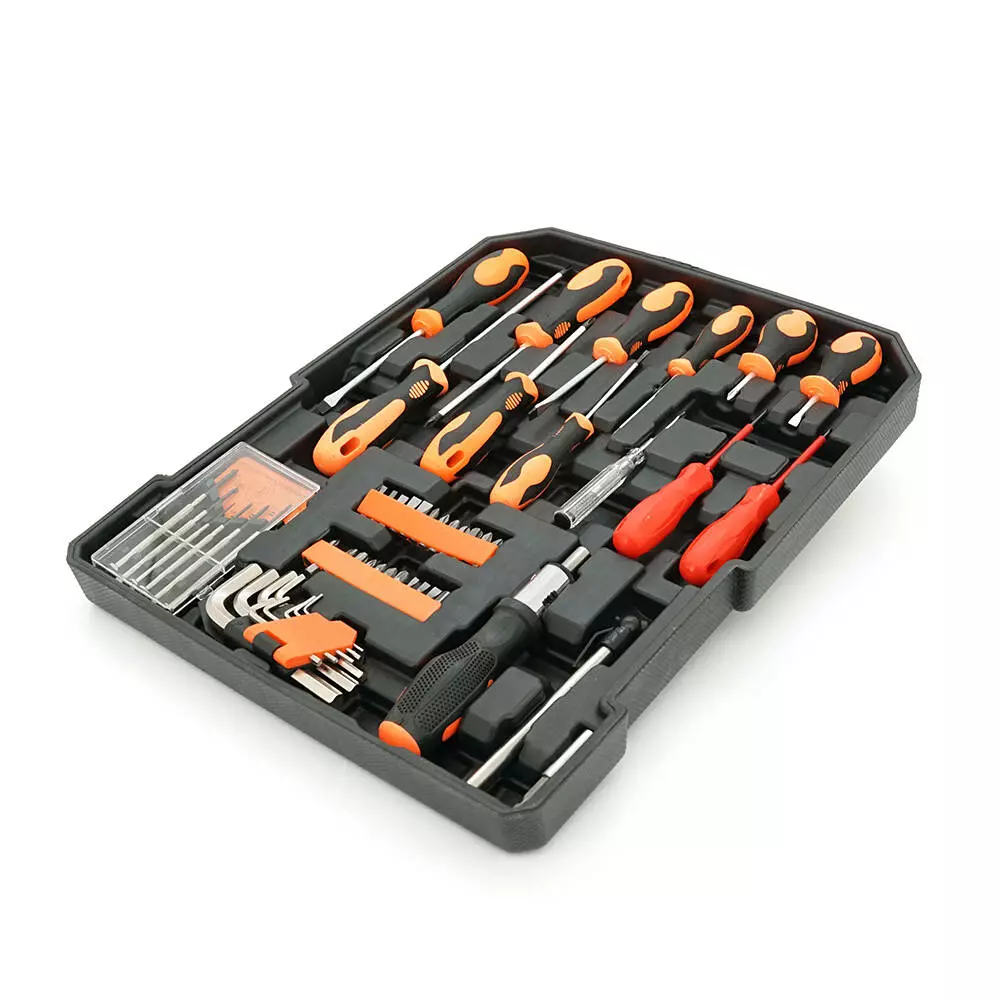 Кейс на колесах робить транспортування набору зручним і легким, а також забезпечує його захист від пошкоджень. Повна різноманітність інструментів дозволяє виконувати широкий спектр завдань - від дрібних ремонтів в будинку до великих будівельних робіт.