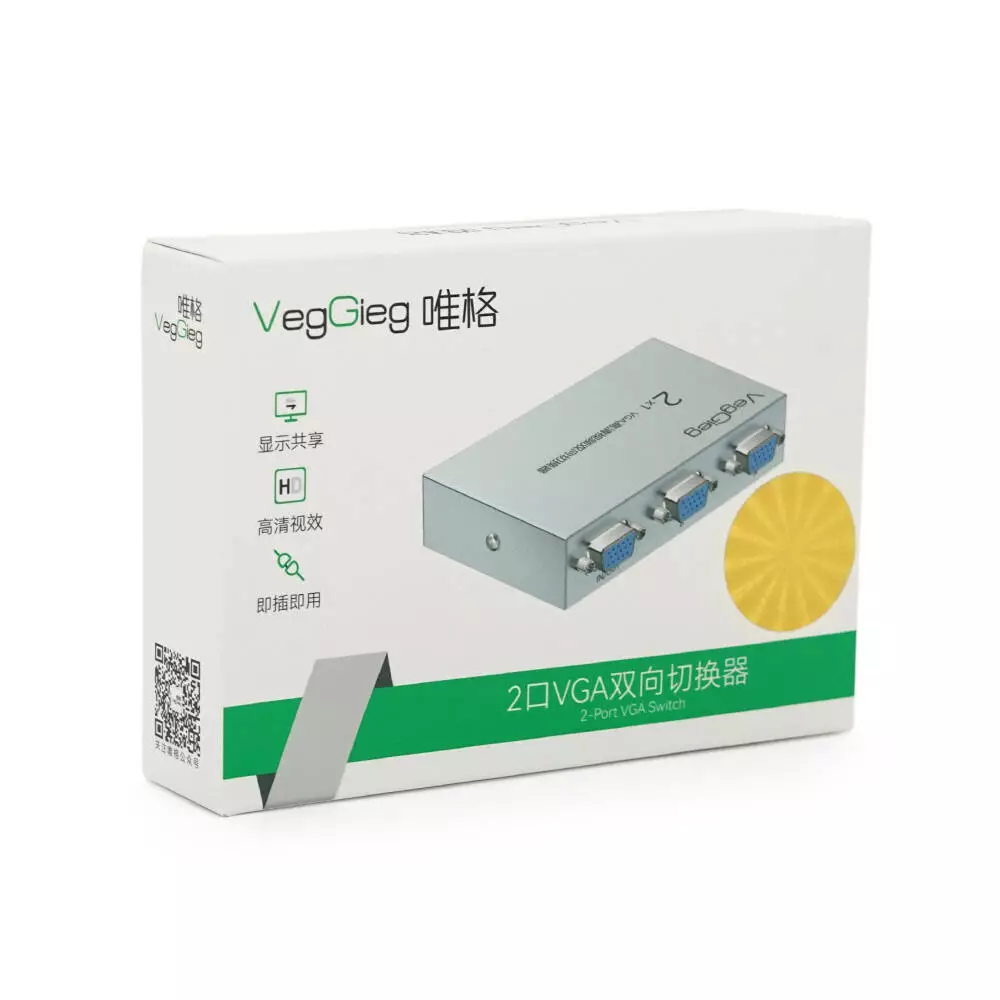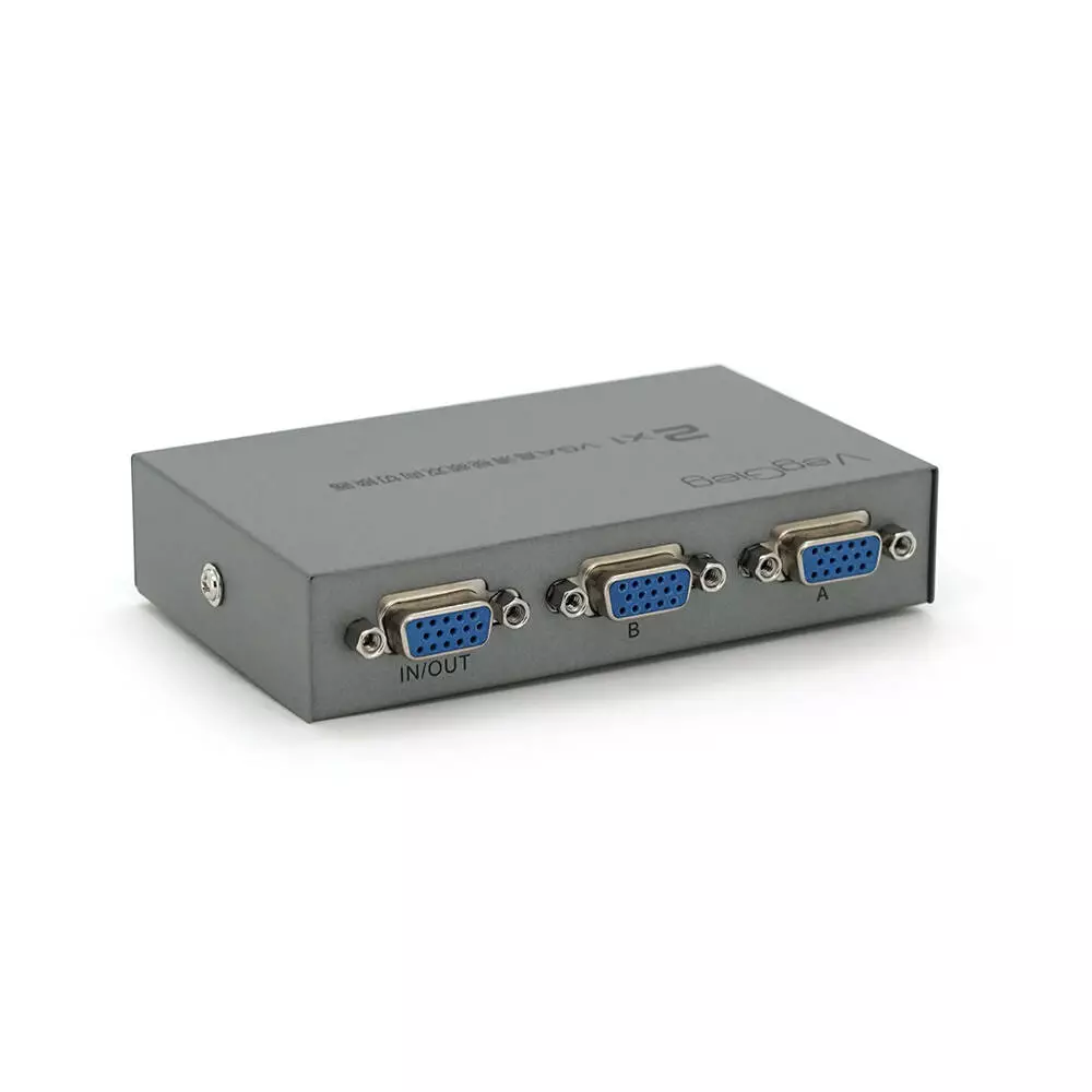 VGA спліттер Veggieg V-F201 – перемикач моніторів на 2 входи, Silver