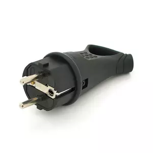 Вилка каучукова із заземленням чорного кольору. Корпус виготовлений