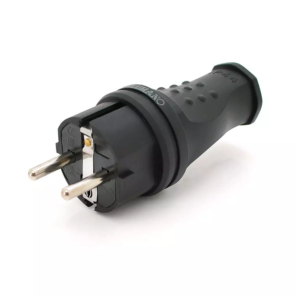 Вилка Євро із заземленням пряма, розбірна, каучук, Premium,IP44, 16А 220V, колір чорний, Q30