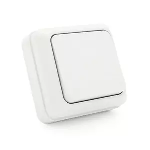 Вимикач одинарний зовнішнього монтажу, виконаний у білому кольорі.