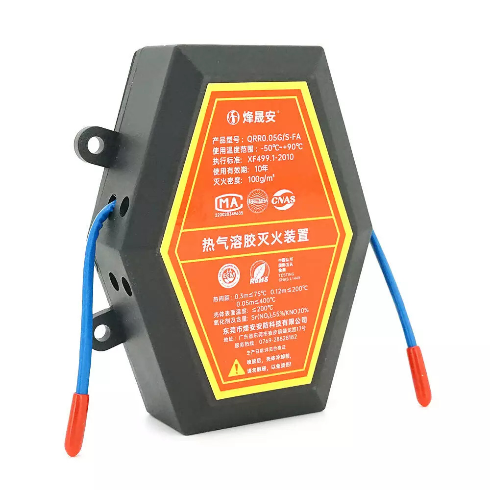 Вогнегасник автоматичний аерозольний QRR0.05G/S-FA. Об'єм 50г. Класи пожеж A/B/C/E. Спрацьовування – від 170°C. Зона покриття 0,5 м³.