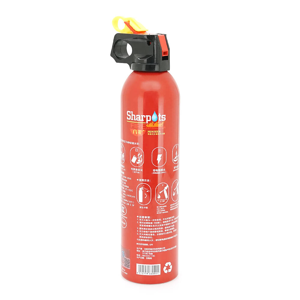 Вогнегасник SHARPOTS автомобільний пінний, портативний, 0,6 кг. робоча температура 5°C-55°C, клас пожежі 0.5A,13B,E,5F. 300*60(мм), red