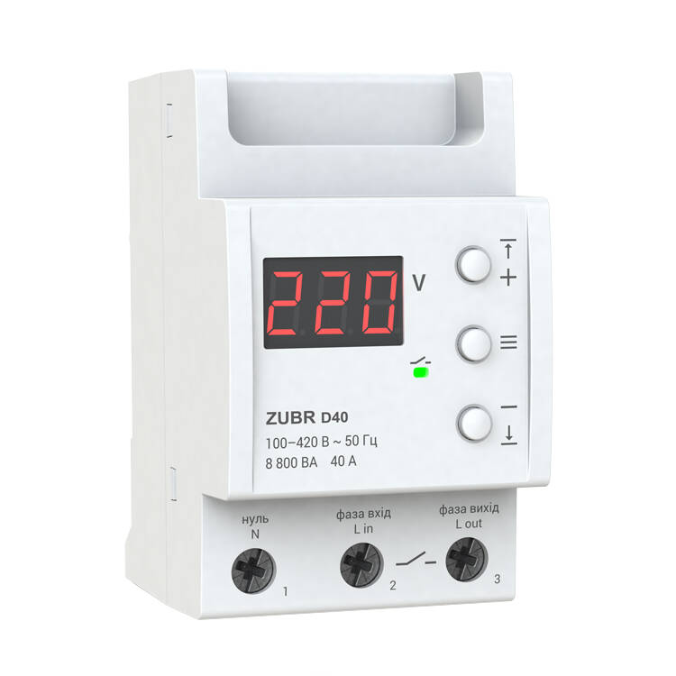 Реле напруги D40 призначено для захисту обладнання від надмірних