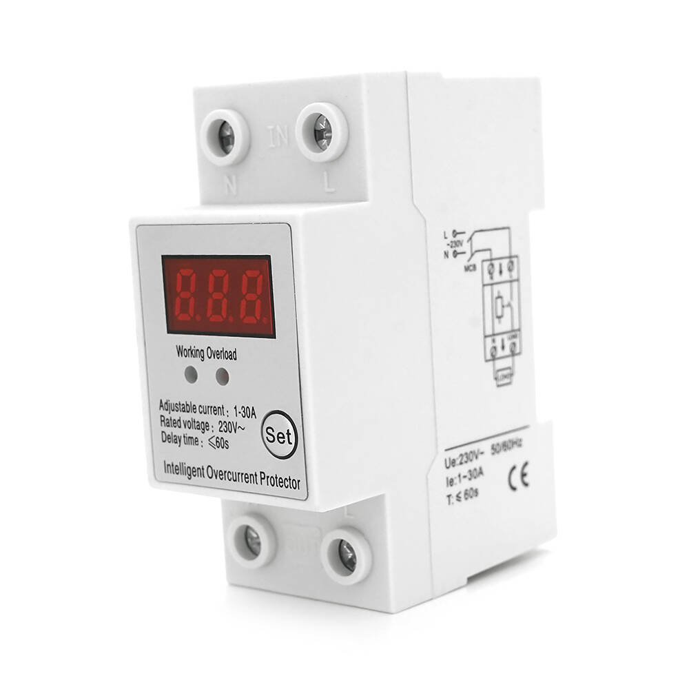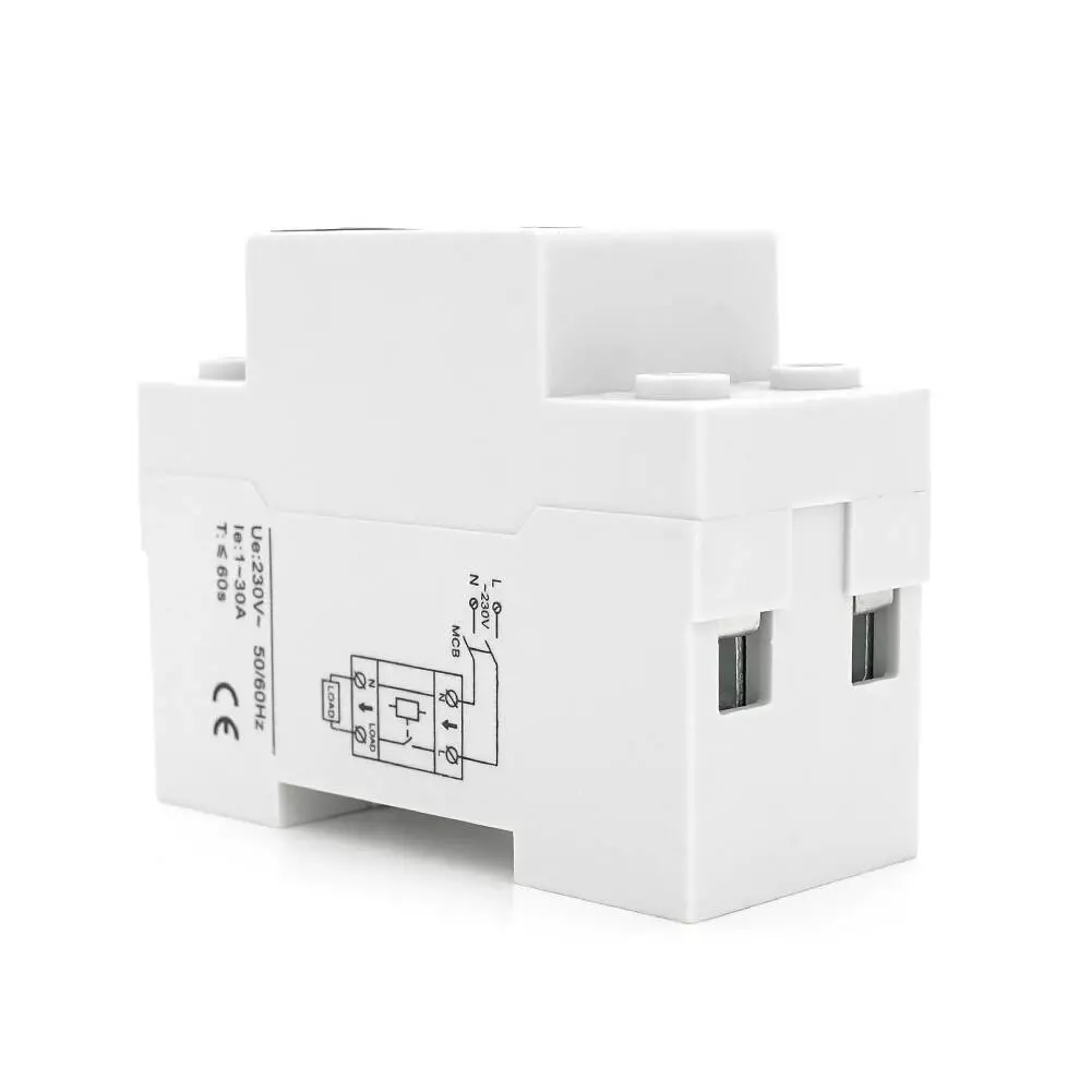 Захисне реле з контролем струму SAP01, 1-30A, 230V, на DIN-рейку 2P, кнопка скидання, 36х65х85 мм