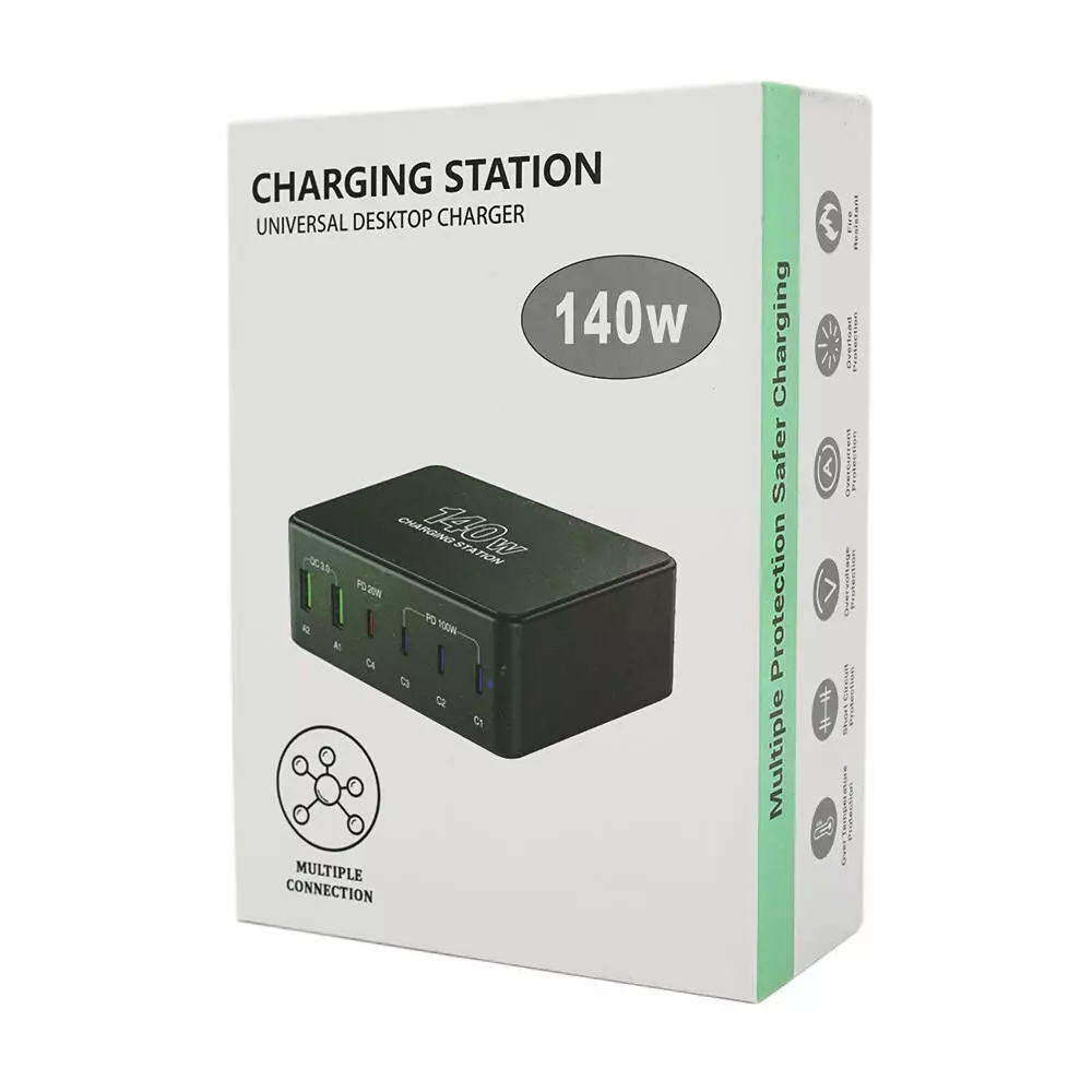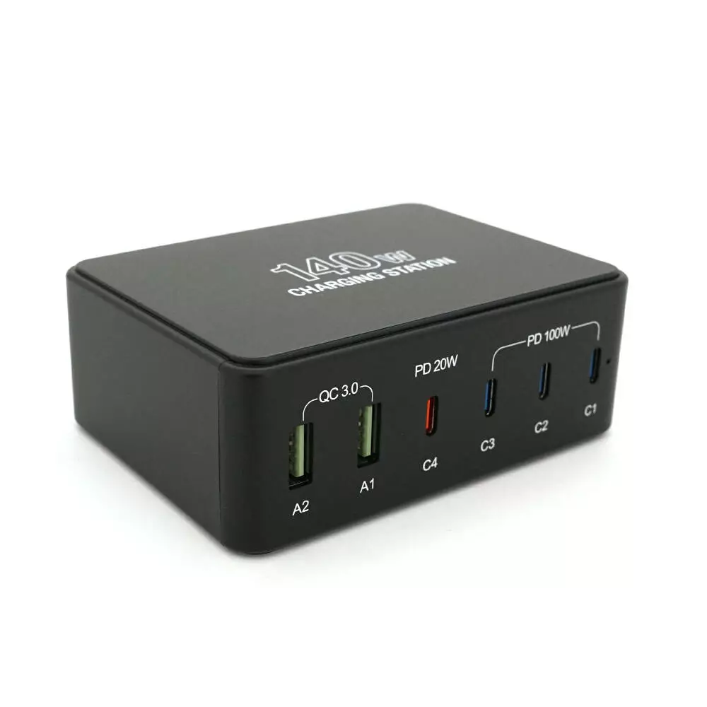 Зарядна станція V-118H потужністю 140W, Output: 2USB+4Type-C, DC: 5V/3, 9V/3A, 12V/3A, 20V/5A, Black