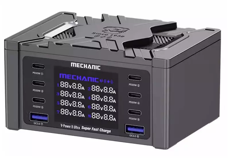 MECHANIC V-Power 8 Ultra – це надійний та технологічний центр живлення для сучасного користувача, який цінує швидкість, зручність та контроль над процесом зарядки. Пристрій поєднує в собі потужність, компактність та продуману ергономіку, роблячи його незамінним помічником у повсякденному житті.