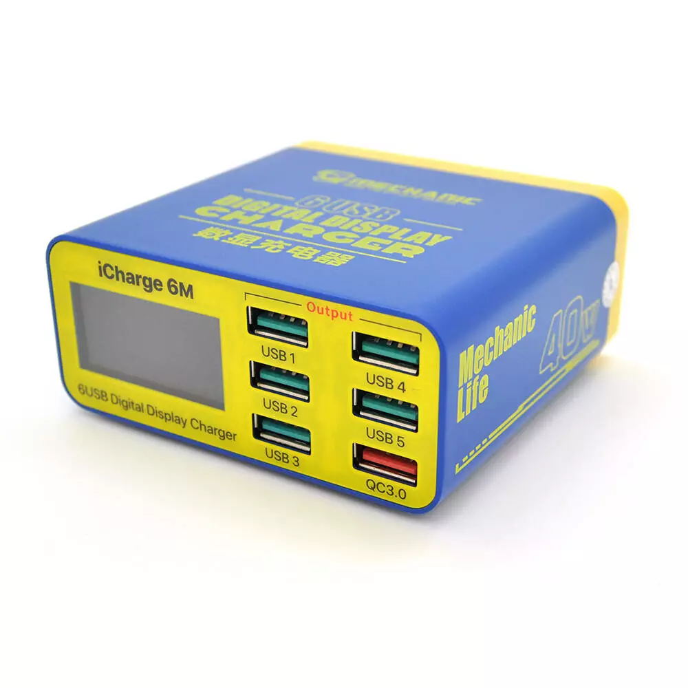 Зарядні станція з цифровою індикацією MECHANIC iCharge 6M , 6*USB-A(1*QC3.0-15W), 220V/40W. 155*115*55mm