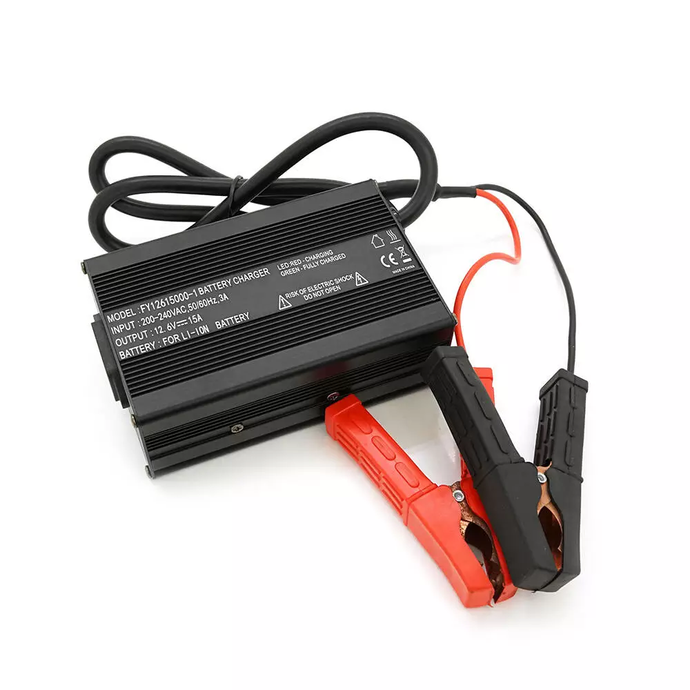 Зарядний пристрій для акумуляторів Li-ion 12V (12,6V),3S,15A, + крокодили, індикація, 135х90х50mm